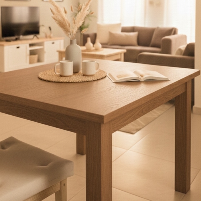 Mesa fija Sol de 0,80 × 0,80, ideal para comedores y cocinas que buscan un diseño simple y funcional para el uso diario. Consultar medidas disponibles.